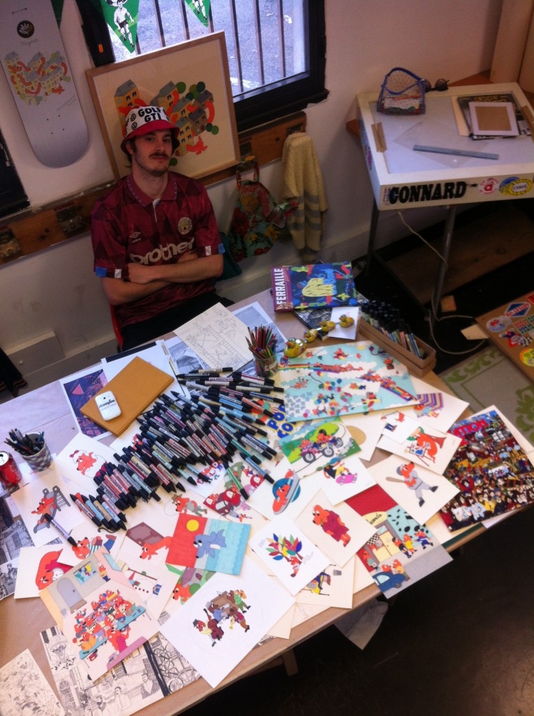 Biberonné par la culture skate board, le tennis, les barbecues, la bière Maxime Galipienso nous raconte les tribulations du chien ALDO RIGOLO. Un personnage attachant, un brin naïf mais qui peut se montrer plus mordant. Un travail singulier dont Maxime Galipienzo n’a pas fini d’explorer les différentes facettes et facéties de son chien préféré. Lorsqu’ ALDO RIGOLO tombe le masque c’est Maxime Galipienso qui se révèle.