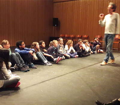 Depuis début 2016, trois classes de l’Ecole primaire de l’Alba (CM1, CM2, CLIS) sont en travail auprès d’Henri Devier afin de construire une histoire partagée, réadaptée, une pièce de théâtre autour du conte de Birago Diop, Le Salaire.