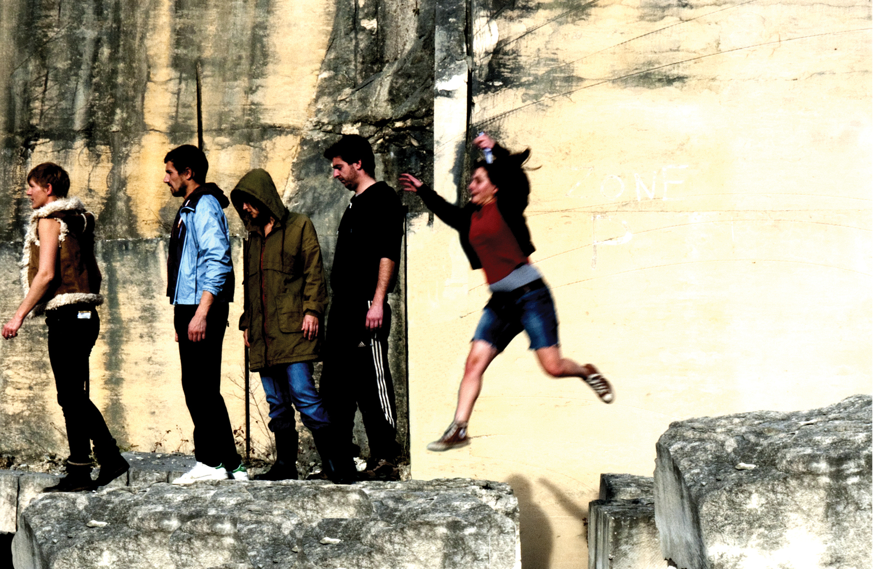 Tout commencerait par un glissement de terrain, une brèche, une faille dans un trottoir, un seuil vers les zones profondes à la lisière d’une forêt, là où ça déborde. Là où quelque chose est encore hors de contrôle. Ce serait un témoignage collectif, quelque chose d’intime aussi. Une parole rapportée d’un voyage, d’une expérience commune encore non nommée.