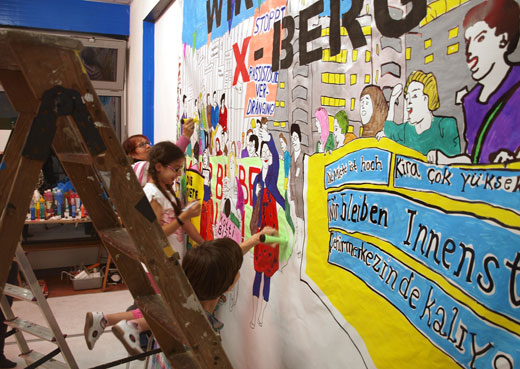 After two weeks of immersion, after 8 months of exchanges with Melkior Théâtre/La gare mondiale, and in prospect of a collaboration on the long term with their district of Kottbusser Tor in Berlin, Julia Brunner and Stefan Endewardt, from Kotti Shop, invite you to contemplate their works, realized with the inhabitants of the Cité Jean Moulin. Achieved from a collaborative work with the team of the Social Community center Jean Moulin, these participative and artistic works look for the formal crossing with those realized in Berlin, with the inhabitants of the Neues Kreuzberger Zentrum.