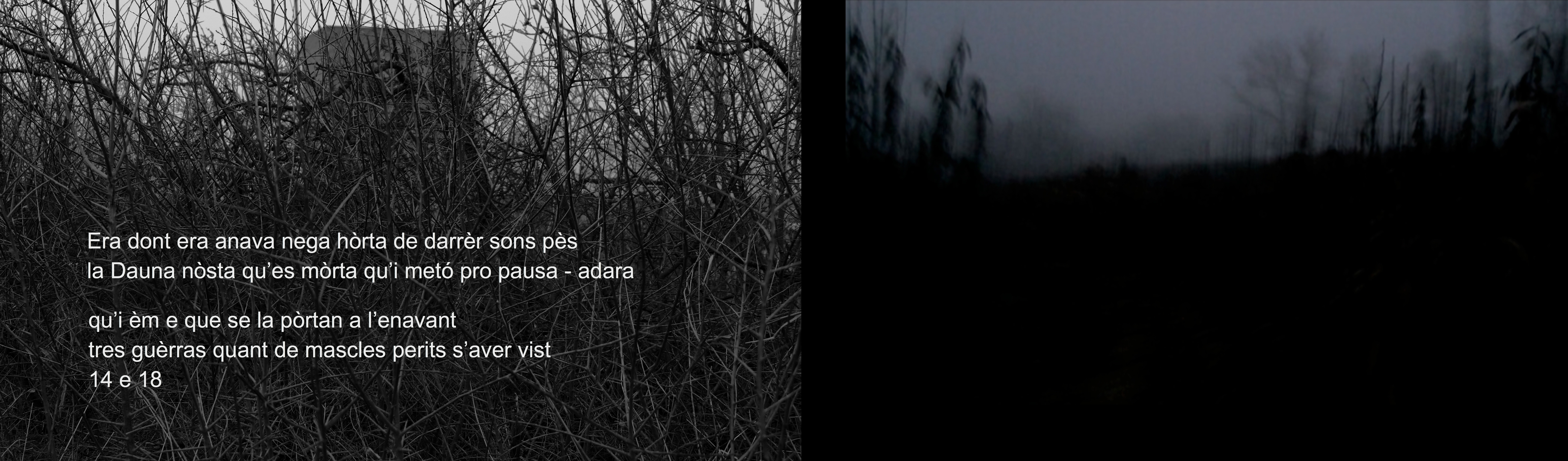Dispositif artistique visuel et sonore, hybride entre le concert et lʼinstallation autour de deux chansons du troubadour Raimbaut d’Orange (XIIème siècle), figure virtuose et souriante du trobar clus ou «trouver obscur» .