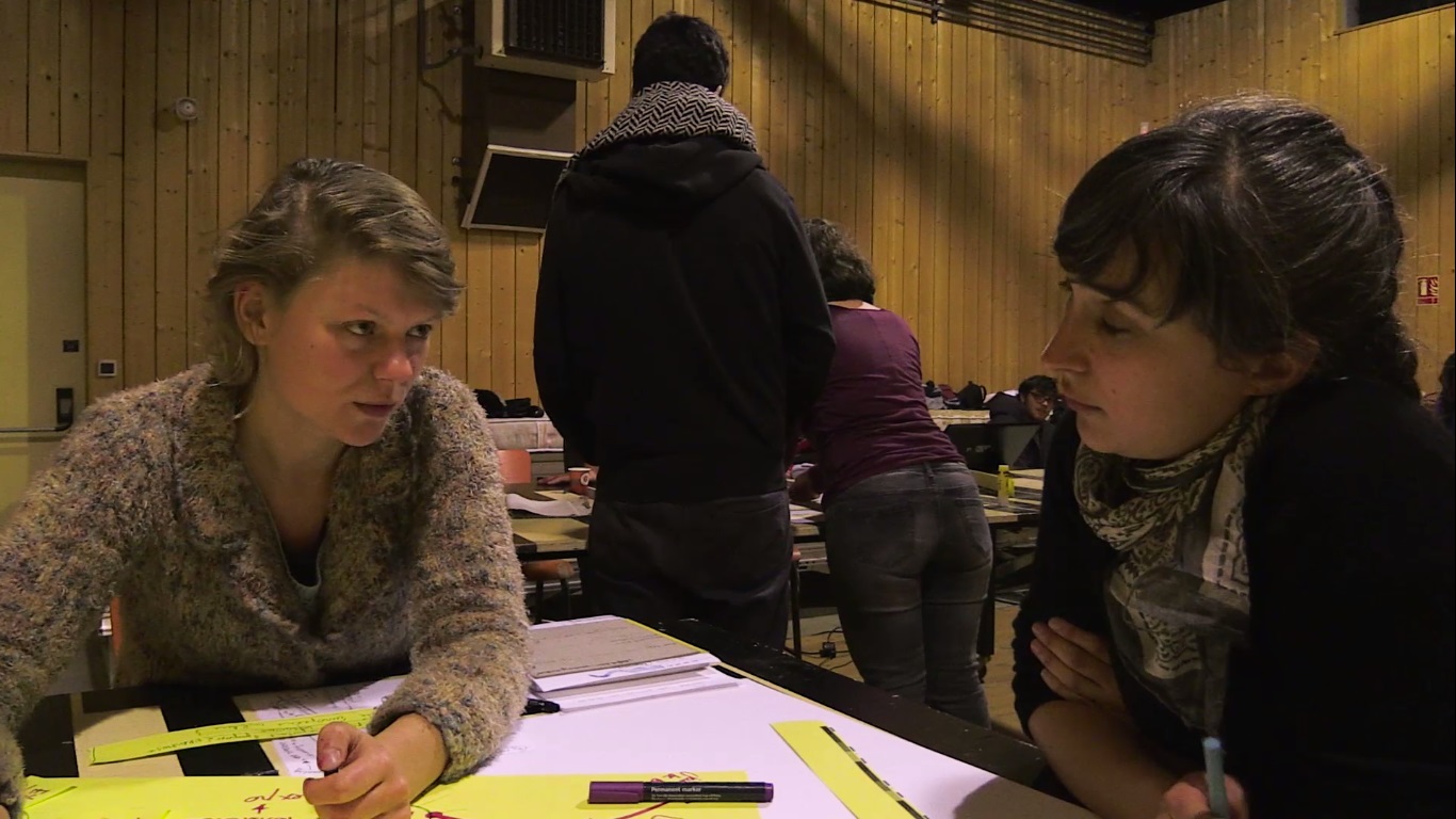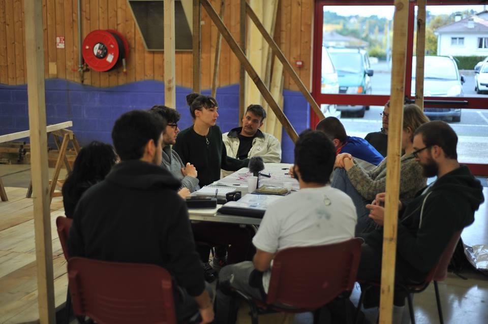 16 et 17 novembre 2016 à Bergerac – La Catte, Festival [TrafiK]* 2016 : alors que des étudiants et des artistes professionnels s’affairent à construire une installation de très grand volume, expérimentation vivante et mouvante, La Maison des Invité-e-s, au sein de l’Espace René Coicaud, un autre groupe établit les bases d’une réflexion commune sur plusieurs thèmes de coopération : la mobilité, la solidarité et la rencontre.