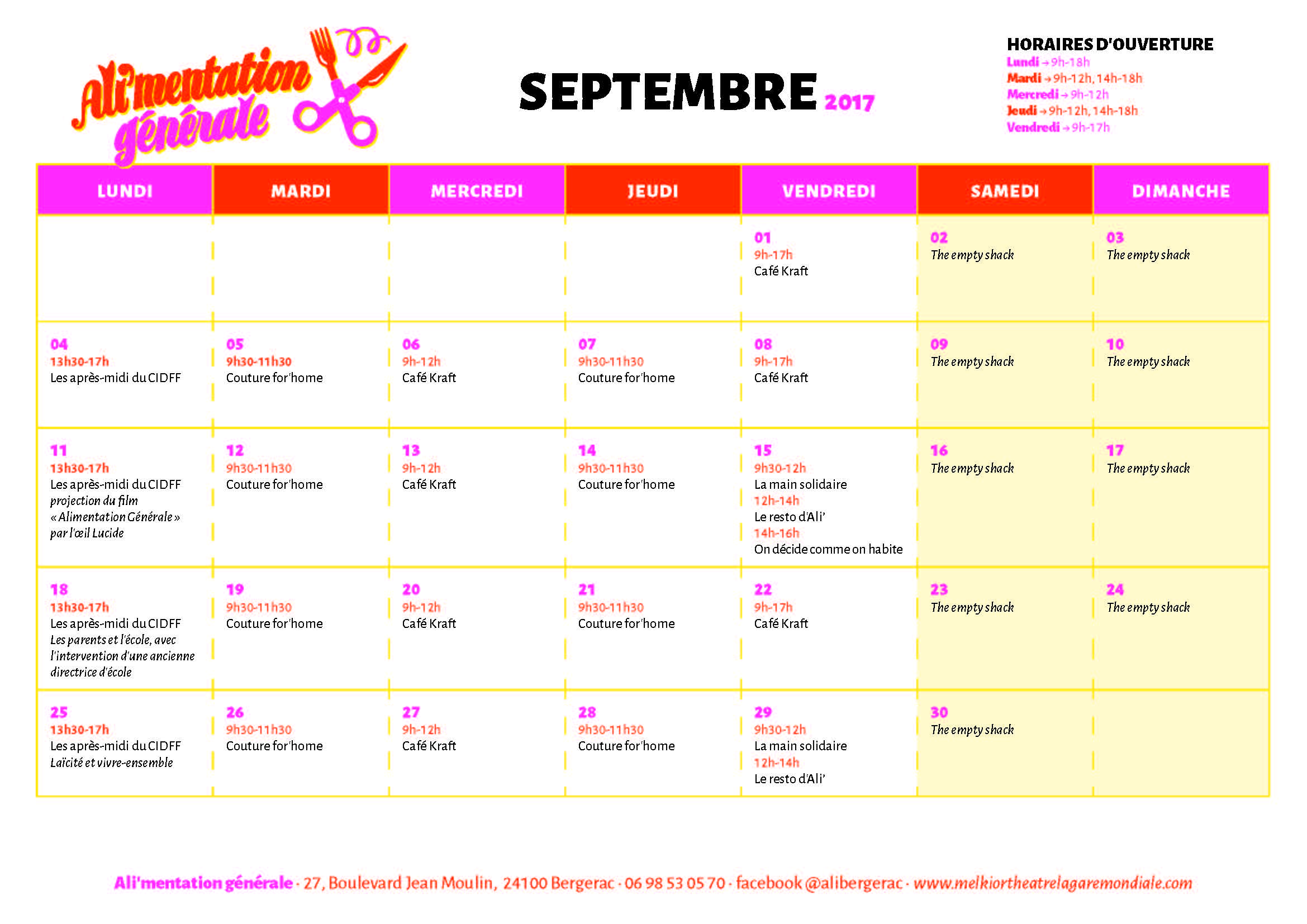 La programmation de septembre-octobre-novembre 2017 est prête, la voici en ligne dans les images à gauche. Le lieu a ré-ouvert ses portes après la pause estivale ce lundi 4 septembre.