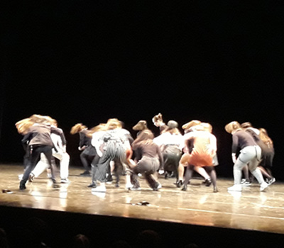 Les élèves de l’option facultative théâtre ont travaillé à La gare mondiale toute l’année à partir de l’oeuvre de Patrick Kermann « la mastication des morts » avec la metteure en scène Bergamote Claus, de la Cie Du Chien dans les Dents. Les élèves d’option facultative Arts danse se sont inspirés du thème de l’exil, du voyage, pour créer une pièce chorégraphique avec l’intervention de la chorégraphe Sabine Samba.
