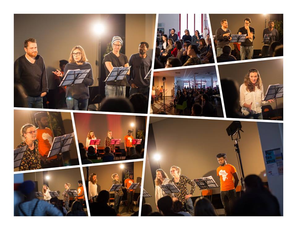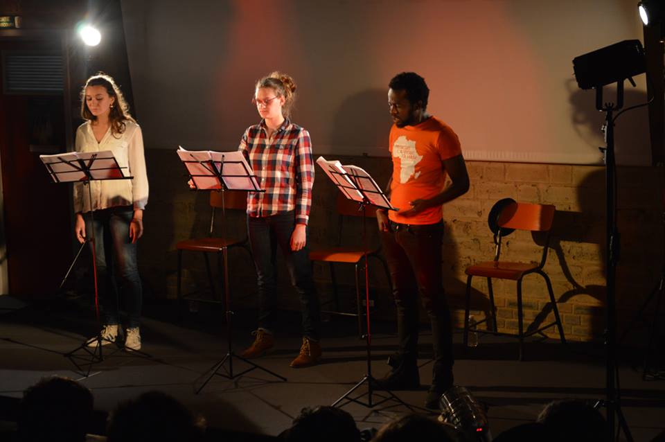 Cette pièce sera constituée de trois voix, qui parleront chacune des réalités des adolescents de Bordeaux, Montréal et Yaoundé. Nous avons le souhait que ces trois voix se mêlent les unes aux autres pour offrir un panorama du monde. Nous imaginons qu’elles soient inter-reliées et qu’elles expriment ce lien qui existe entre ceux qui partagent une même temporalité mais qui vivent dans des endroits différents. Nous souhaitons donner aux jeunes une possibilité de toucher à la réalité de trois contextes de vie différents à travers un seul texte, leur offrir l’occasion d’une réflexion d’ensemble. »