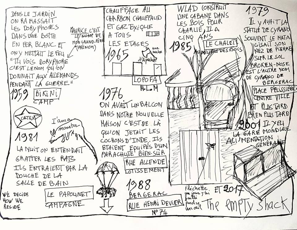Après presque un an et tous ses voyages, « The Empty Shack » va passer la majeure partie du mois de septembre à Ali’mentation Générale (27 boulevard Jean Moulin). Henri Devier et ses invités proposeront aux voisin-e-s, aux riverain-e-s et quiconque le souhaitera de participer à son nouvel « ESSAI D’OCCUPATION » artistique et citoyen, avec une question centrale : comment habitez-vous ?