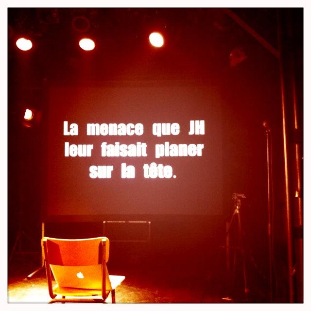 Et multimédia pour pousser loin les possibles de la simultanéité entre texte, son, image, live et différé et l’interaction avec les spectateurs. Prodigalité. L’un et l’autre, le littéraire et le multimédia cherchant à s’augmenter réciproquement.