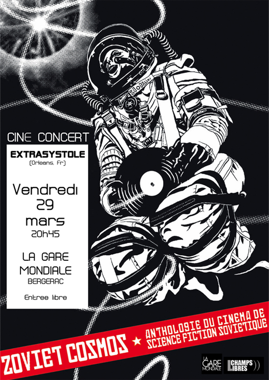 Le collectif H.A.K. propose 90 minutes d’images anthologiques tournées en Union Soviétique sans que nous, Occidentaux n’en fûmes jamais au courant. Illustrant des classiques tels que le fantastique film de Klushantsev « En route pour les étoiles », ou les visions délirantes de « Mars » et de « Luna », le collectif H.A.K posera sa bande son bruitiste sur ces « space operas » sans méchant et sans bataille.