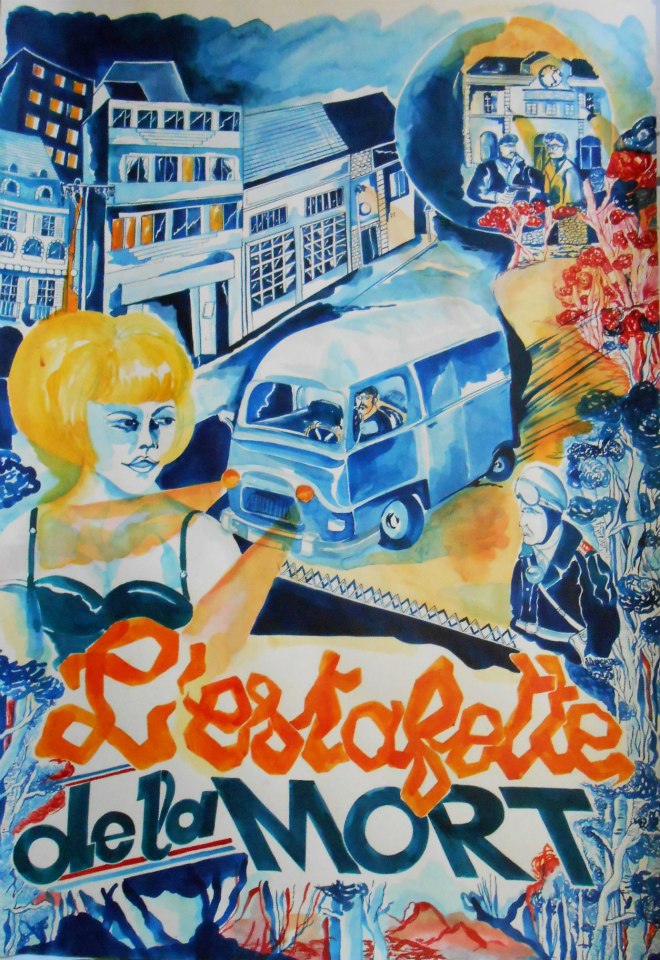 Titulaire d’un DNSEP à l’école des Beaux-arts de Bordeaux, navigant entre graphisme et édition, c’est pourtant comme co-pilote du bibliobus de son grand-père qu’elle entamera sa pratique d’illustratrice itinérante. Dessiner confinée dans un fatras de romans (de gare), dessiner avec pour unique horizon l’asphalte et l’odeur des vieux papiers, dessiner surtout avec une précision d’orfèvre, malgré les nids de poules sournoisement dissimulés au grès des routes départementales …