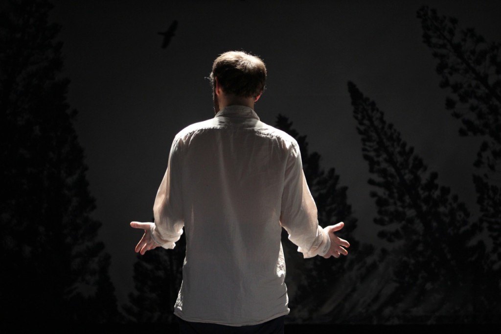 PARLER AUX OISEAUX est une manoeuvre poétique touchant à tous les langages de l’art (texte, musique, film, mise en scène) pour tenter de rendre visible et audible une traversée organique nourrie de voyages dans le temps et dans l’espace, de pratiques ascétiques et de réminiscences obsessionnelles.