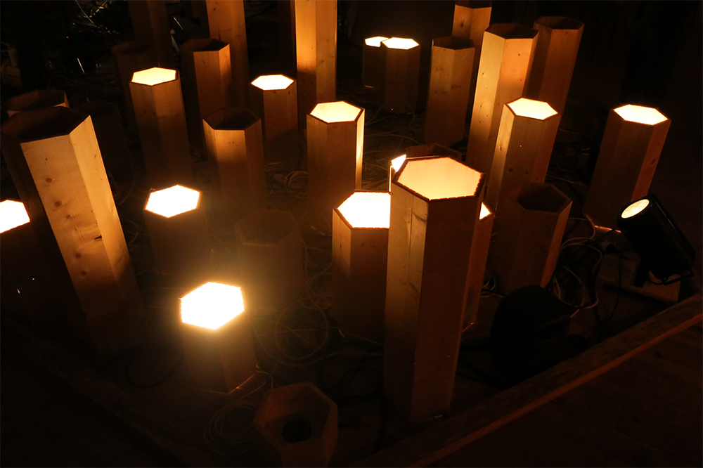 Projet au long cours, La Ruche à sons s’intéresse au monde des abeilles, au phénomène vibratoire si particulier à cette société animale et à la forme emblématique de l’alvéole.